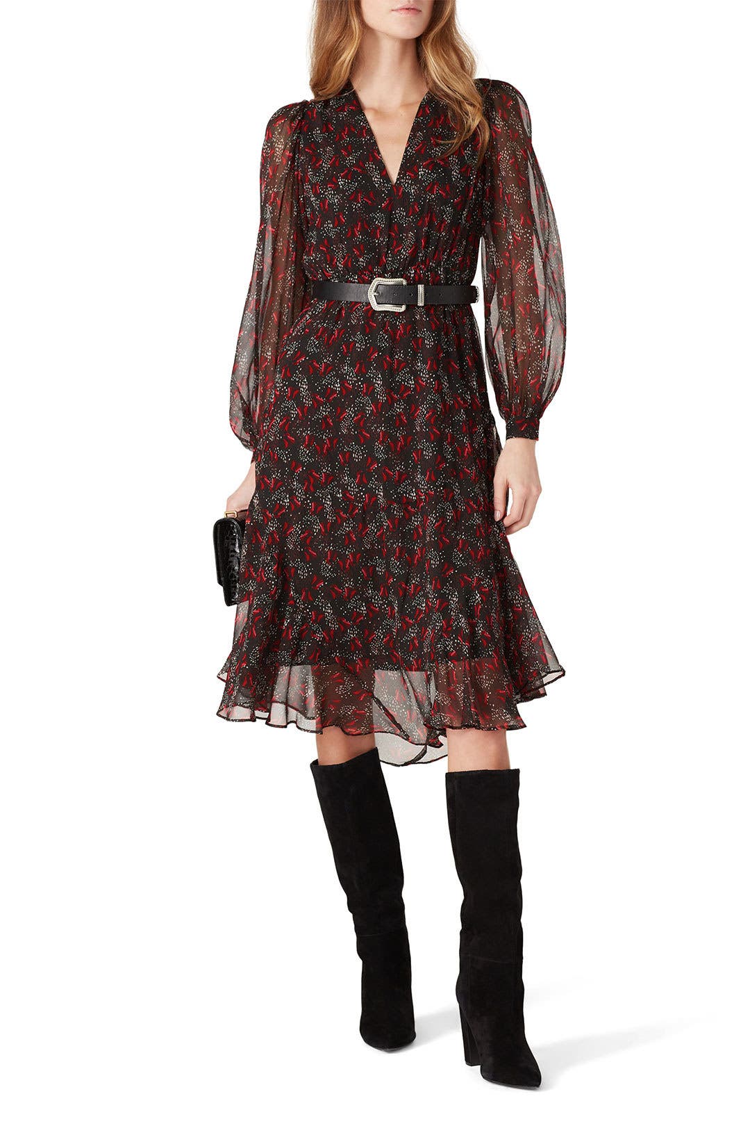 PINKO Bleck/Red Floral Long Slv Midi Dress – Size 10