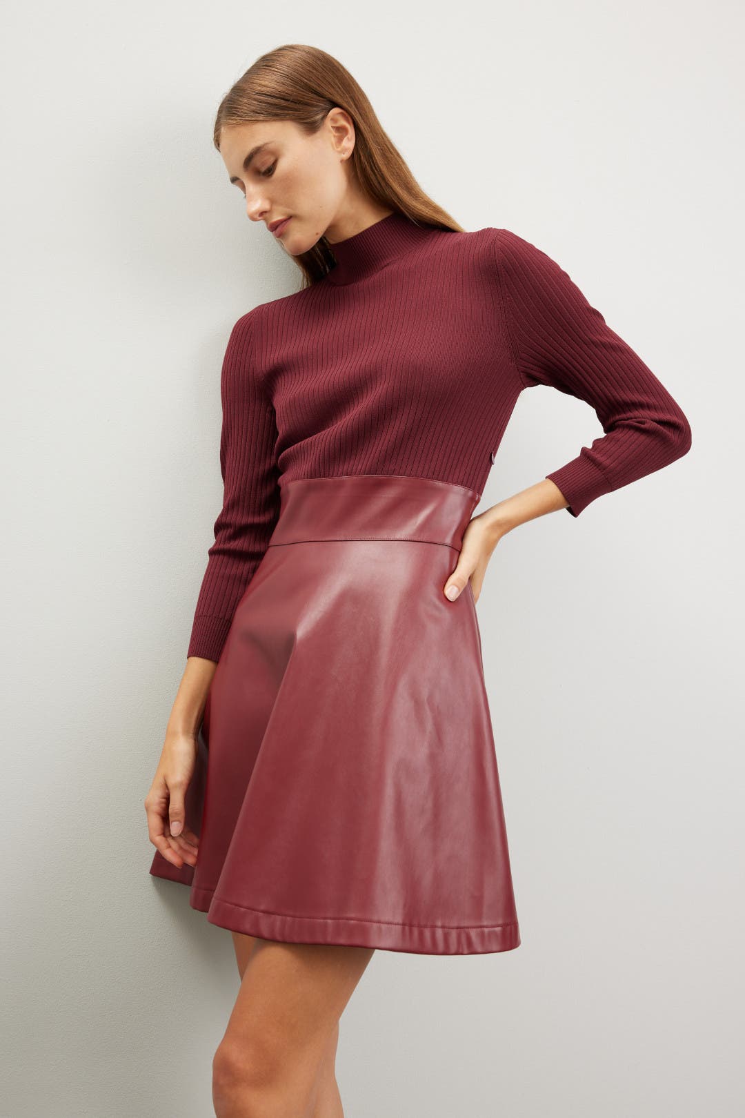 Shoshanna Red Knit Ls And Leather Skirt – Size 6